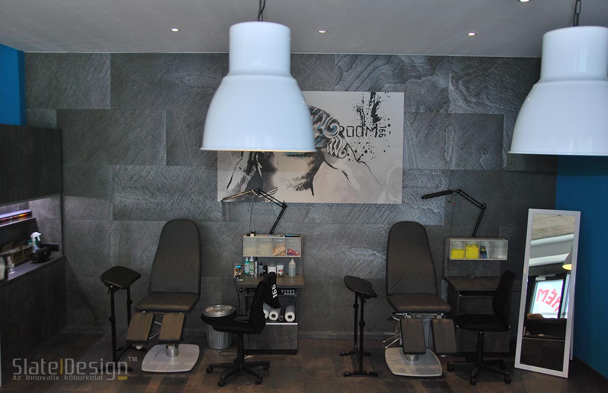 La amenajarea salonului de tatuaje exclusiv YourMindTattoo din Elveţia, au fost alese plăcile de micaşist LiteStone Galaxy Black, cu caracter masculin, care se potrivesc cel mai bine cu imaginea salonului, acestea primind un loc relevant pe peretele de fundal central al magazinului şi pe laterala tejghelei barului. În plus, ușa de intrare a fost placată cu micașist D. Black, prin tăierea la dimensiuni extra a unei plăci, de 244×122 cm.